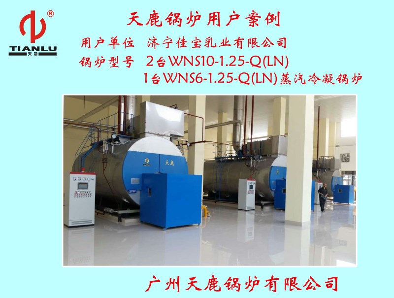 > 濟寧佳寶乳業(yè)有限公司2臺WNS10-1.25-Q(LN) 1臺WNS6-1.25-Q(LN)蒸汽冷凝鍋爐